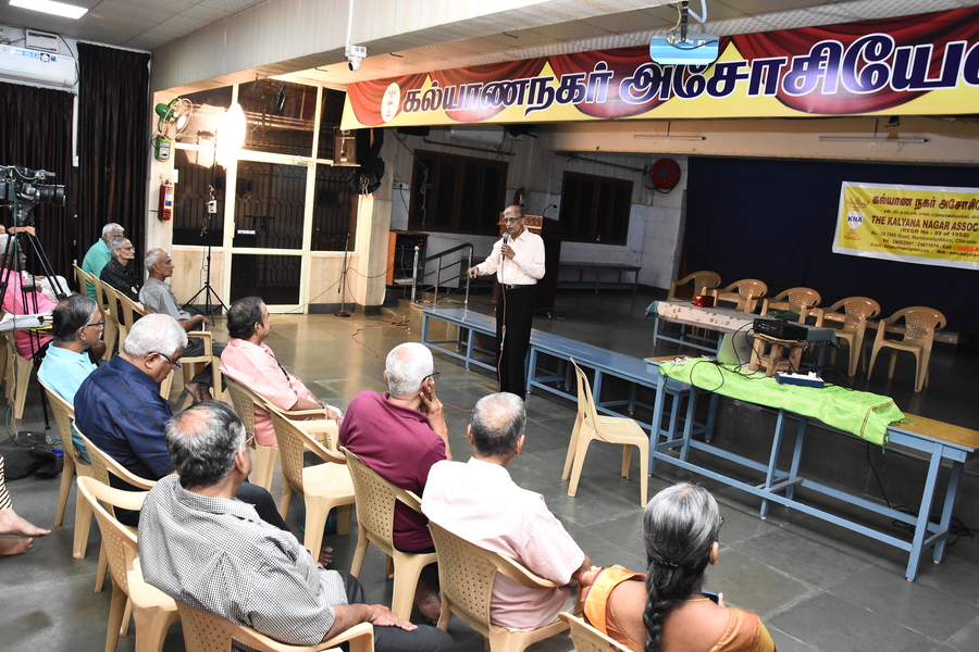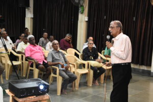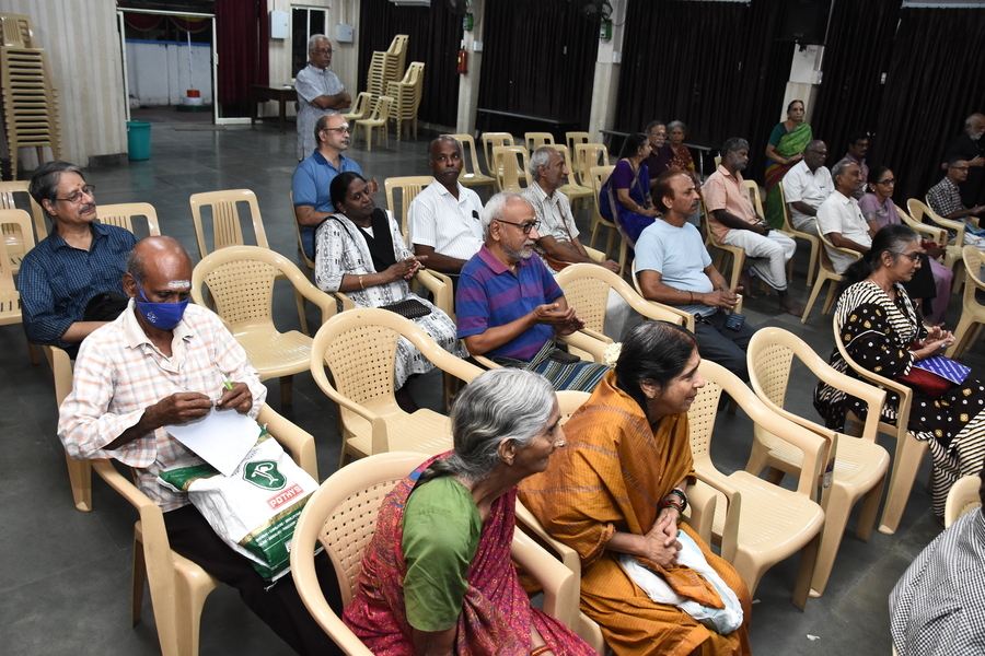 The session scheduled for the 30th November had to be postponed to the 7th of December, 2025 due to inclement weather at Chennai. However, not dampened by the weather around 80 people including seniors, home makers and retired professionals from in and around the area known for learned people, attended the session of around 90 minutes and made the event a memorable one.