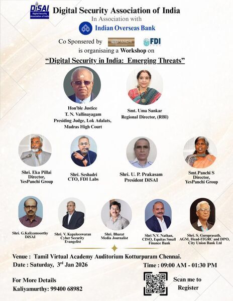 On being invited by the Digital Security Association of India – DiSAI , I was pleased to participate in the workshop titled “Digital Security in India: Emerging Threats” on the 3rd January, 2026, at Chennai.